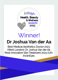 Winner, Best Medical Aesthetics Doctor (West London). Winner, Most Innovative Skin Treatment (UK): InclinEyes